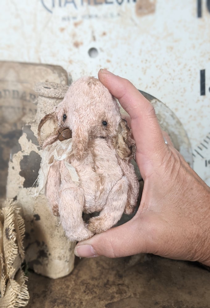 TeeNiE-WeeNiE - 4.5" - Vintage-Shabby little PINK Fat Elephant by Whendi's Bears...